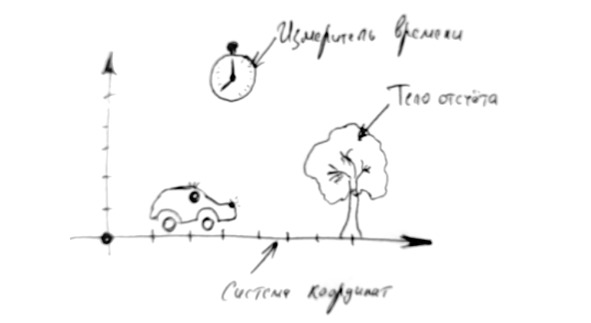Системой отсчета называется совокупность неподвижных относительно друг друга тел (тело отсчёта), по отношению к которым рассматривается движение (в связанной с ними системе координат), и отсчитывающих время часов (системы отсчёта времени), по отношению к которой рассматривается движение каких-либо тел. Если коротко и просто – то это пространство, в котором мы перемещаемся, и часы, а также точка отсчёта, от которой мы отмеряем расстояние. Всё это необходимо для того, чтобы в дальнейшем иметь возможность сопоставить разные виды движения и движения разных тел, а также правильно выполнить расчёты.