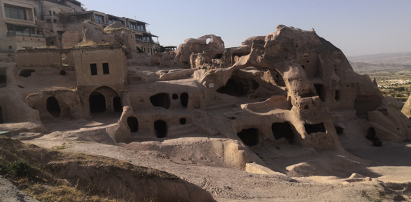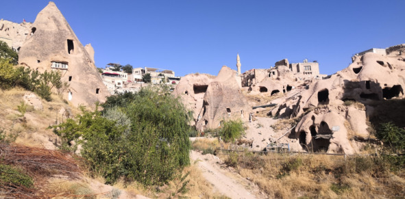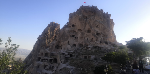 В итоге, переночевал возле мечети предыдущего города Учисар (стандартные: вода, туалет, душ, розетка, лавки, столы) Очень удачно получилось. В городе плюсом была крепость с пещерным городом. Ещё, с утра оставил рюкзак с самым тяжёлым и ненужным в одном из магазинов и, в итоге, закольцевал маршрут на него. Осмотрел крепость, развалины пещер вокруг.