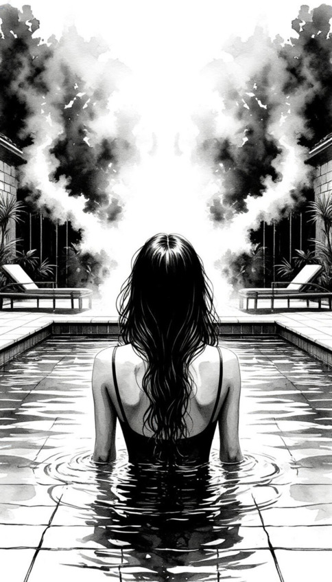 Моргана поднялась, и жестом велела следовать за собой. В глубине дома находилась купальня. Это была круглая комната, выложенная черным мрамором, в центре находилась огромная каменная чаша, от которой поднимался вверх молочно-белый пар. Воздух был тяжелым и влажным. Пахло лавандой и розмарином. Моргана щелкнула пальцами, и в чаше сами собой зажглись подводные светильники, отбрасывающие на стены танцующие блики.