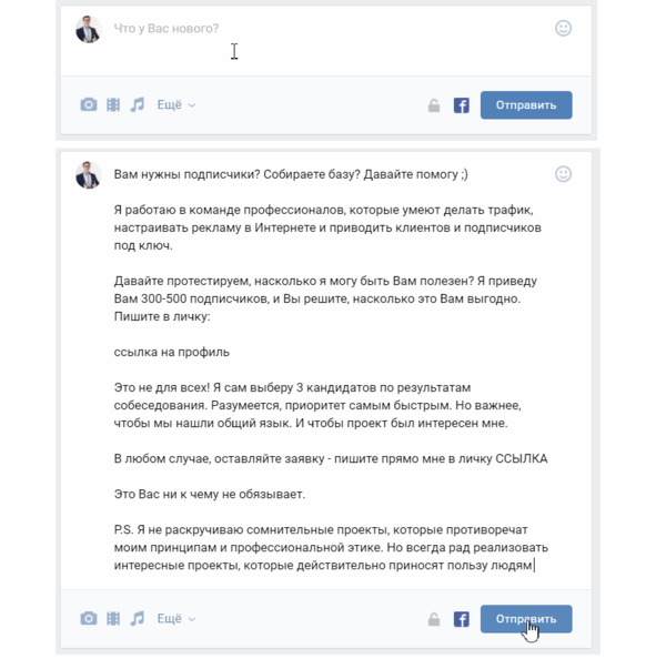 «Вам нужны подписчики? Собираете базу? Давайте помогу;)