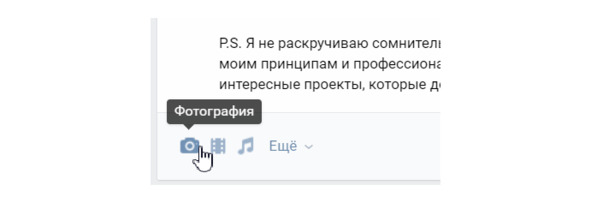 Картинка добавляется нажатием на значок, похожий на фотоаппарат.