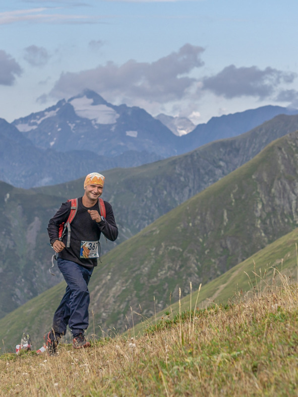 …Спуск. Уже никуда не тороплюсь. Добраться бы без травм до палатки. А вниз бегут немного травмированные, поцарапанные участники. У них ещё дистанция не закончилась… … Сквозь град, туман и непогоду спускаюсь к Бзерпинскому карнизу. Выдают медаль участника. 16 км пройдены. Думаю, что я не последний. Но результат же не важен!) … … Уже второй раз участвую в соревнованиях по скайранингу. В прошлом году из-за погоды, выбора неподходящей дистанции, плохого подбора снаряжения не смог подняться на вершину. В этом году смог! Подняться на очередную единичку Б!…