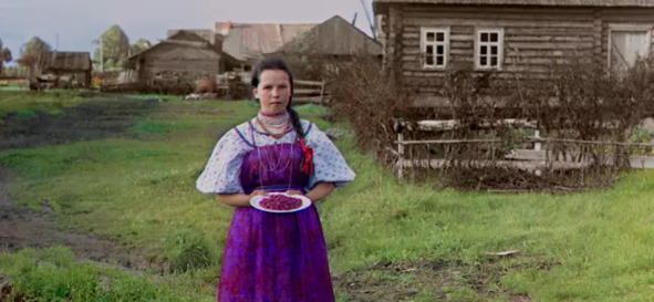 Pre-revolutionary Russia in color. Presented are photographs of Sergei Mikhailovich Prokudin-Gorsky, a Russian chemist, a student of Dmitry Mendeleev, an inventor and an innovator and photographer. Of the three black and white images drawn through the image filter, one is assembled, colorfully displaying the reality of the picture. This book presents reference images and text for which we, dear reader, are restoring a voluminous History. The undated photo shows a girl from a village in Central Russia. All in color. Help yourself to the berries. Presumably 1903