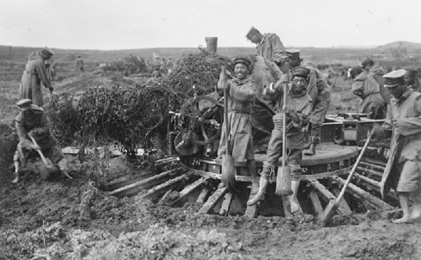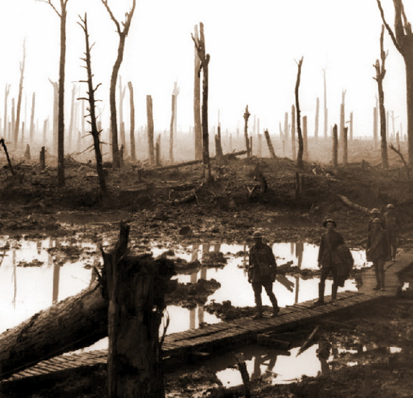 Famous photograph of the First World War, the British military among the forest, destroyed by German artillery. Flanders, autumn 1914. The battle on Marne organically flows into “Running to the Sea” – a chain of battles in Flanders (western Belgium), which aim to outflank the enemy. By November 15, the front is buried in the North Sea and stabilized. Over 700 km. parties to the conflict equip rows of trenches, barbed wire, dugouts and long-term gun emplacements