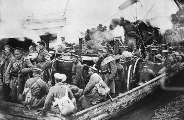 In order to help its defeated Austro-Hungarian allies, Germany is organizing an offensive against the then Russian Poland. From September 28, 1914, the German armies inflict a number of powerful blows on the Russian corps and, in spite of their own high losses, reach the outskirts of Warsaw. Here the allies get stuck in positional battles and miss the counteroffensive of the Russian armies. Organized waste sometimes turns into a total escape. By November 8, Austro-Hungarian and German troops occupy the line of defense preceding the offensive. Allies lose 35,000 people, 23,000 prisoners, Russia – 32,000. In the photo – Russian troops force the Vistula