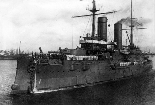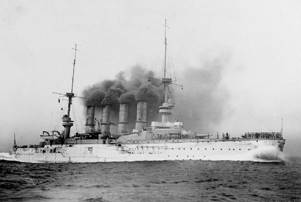 Somehow it happened that, despite all the efforts, Germany is not a great maritime power. However, newcomers are lucky. Perhaps that is why, on November 1, 1914, the battle at the Chilean port of Coronel is in favor of the Open Sea Fleet. Two armored, three light German cruisers are engaged in raiding. Their main goal is to prevent the admission of Chilean nitrate to British weapons factories. The forces of the English seem to be commensurate; two armored and two light cruisers. The undoubted courage of the British admiral Cradock prevails over his prudence. The squadron is sent to intercept the Germans are not sufficiently prepared, not in full force. Grand Fleet attacks in the evening, when its ships are illuminated by the setting sun, and the Germanic gray-painted cruisers hide the dark background of the coast. The Scharnhorst and the same type Gneisenau, whose commanders, in contrast to most British reservists, received excellent training, achieve hits of 210 mm and 150 mm. airborne guns. Two armored cruisers are sailing to the bottom. It is still in the custom of time to rescue teams of sunken enemy ships, but this is not the case. In icy, 9—10 degrees Celsius water, 1654 British sailors die. Sanitary losses of the German fleet – two wounded. On the photo is the German armored cruiser Scharnhorst.