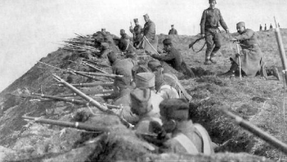 Since July 28, the Austro-Hungarian units have advanced some distance in Serbia, but already on August 19 they have suffered a crushing defeat. The second, more powerful wave of the Austrian offensive, November 30, 1914, overwhelms Belgrade. Ammunition and foodstuffs from France and Russia allow the capital to be liberated by December 15, 1914. The front stabilizes at the frontier of the Sava and Drina rivers. In total, by this time the Austro-Hungarian Empire was losing 28,000 people killed, 46,000 prisoners, Serbia – 22,000 permanently, 19,000 prisoners. In the photo – the Serbian soldiers in the trenches. Neighborhood Kolubar, November 16, 1914