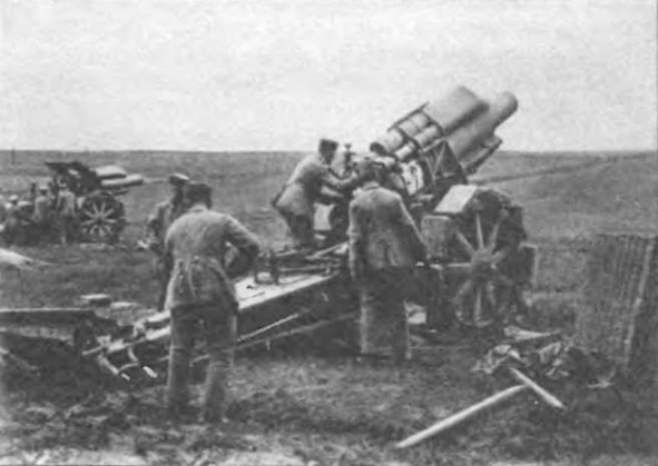 From June 26, 1915, the Austro-German troops were expanding the front of the attack on all of Poland and East Prussia. The well-fortified fortress Novogeorgievsk surrenders practically without a fight, after shelling from heavy guns and bombardment with the then rather primitive airplanes that are not a decisive weapon. 83,000 people are taken prisoner, including 23 generals and 2,100 officers of lower rank. In addition to all that, the enemy is transferred 1,200 guns and a million shells that are so scarce in the Russian army. A conspiracy theory is born in Russian society. As a result, Nicholas the Second became the Supreme Commander three days after the surrender. And, this is also not the best solution. Warsaw Russian troops leave on August 4. The great retreat continues. The photo shows a Russian artillery crew near a field 3-inch gun. Somewhere in Poland, summer 1915