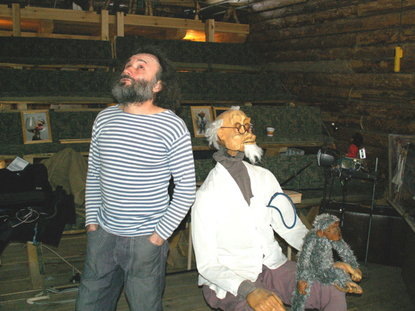 Владимир Захаров в своем театре с доктором Айболитом и обезьяной. 2004 г.