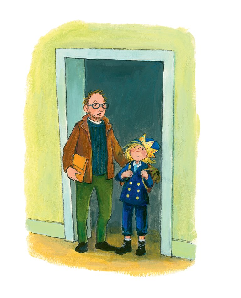 В дверном проёме стоял господин Апфельбек. На этот раз он был не один. Рядом с ним стоял мальчик с волосами до плеч. Шапка полетела прямо к его голове и попала точно в цель. Корона съехала набекрень и повисла над ухом мальчика.