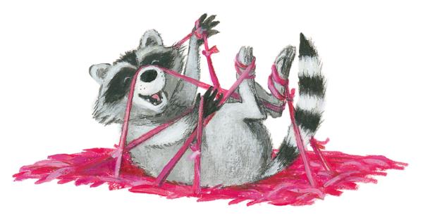 Вздохнув, мама достала ножницы и, осторожно обрезав нити, освободила маленького енота. Он с облегчением забрался в корзину с клубками и принялся радостно гонять их по комнате. Что же до красивого нового лоскутного коврика для Розы, то он оказался наполовину испорченным.