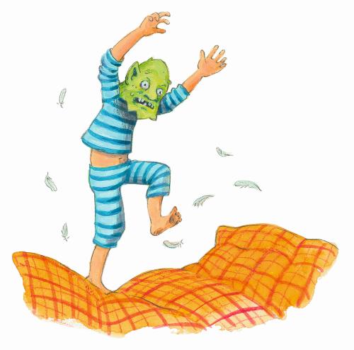 В выходные Роза всегда просыпалась первой. Обычно первой. Но сегодня она проснулась оттого, что её щекотал болотно-зелёный зомби. К счастью, Роза была настоящей принцессой-бунтаркой и ничего не боялась. Кроме того, на зомби была надета полосатая пижама Розиного брата Рокко, да и голос казался таким знакомым…