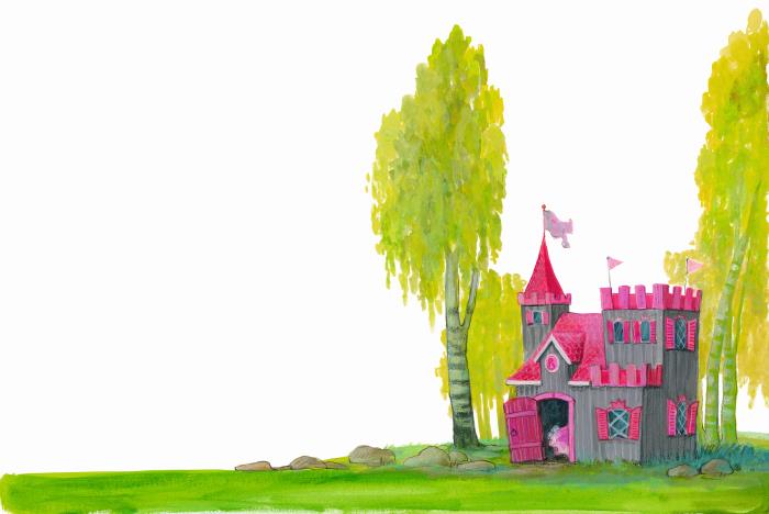 Каким волшебным кажется лес ранним утром! На манжетках блестят капельки росы, а сырой мох пахнет духами феи! Между берёзой и красным буком, которых Роза окрестила Белоснежкой и Розочкой, троица друзей свернула с дороги, ступив на тайную тропинку, которая вела к колокольчиковой поляне. На краю поляны в ослепительных лучах утреннего солнца по-королевски возвышался замок «Принцесса Роза».