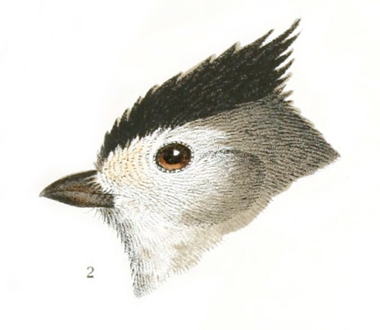 Lophophanes bicolor, BonapTUFTED TITMOUSE; BLACK-FRONTED TITMOUSEParus bicolor, Linn. Syst. Nat. 12th ed. I, 1766, 340 (based on Parus cristatus, Catesby, I, pl. lvii).—Pr. Max. Cab. Jour. VI, 1858, 118. Lophophanes bicolor, Bon. List Birds Europe, 1842.—Baird, Birds N. Am. 1858, 384; Review, 78.—Sclater, Catal. 1861, 14, No. 87. Bæolophus bicolor, Cab. Mus. Hein. I, 1850, 91 (type of genus). Lophophanes missouriensis, Baird, Birds N. Am. 1858, 384 (var. from Missouri River).