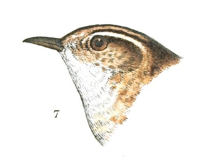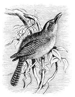 Habits. This interesting species of Wren was first met with by Audubon in Louisiana. A number of individuals were observed at the time, but nothing of its history was known for several years afterward. In shape, color, and habits it most resembled the Carolina Wren, but was less rapid in movement, and not so lively. Fourteen years later Dr. Bachman again met with birds of this species, in 1835, at the Salt Sulphur Springs of Virginia. They comprised a family of two parents and five young, nearly full grown. Their notes were like those of the Winter Wren, neither louder nor more connected. They seemed of restless habit, creeping actively among fences, stumps, and logs. One ascended an oak, nearly to the top, in the manner of a Creeper. This species proved to be quite common in that locality, and to be the only Wren abundant among the mountains. Dr. Gibbs detected it near Columbia, S. C., and Dr. Trudeau afterwards found it quite common in Louisiana.