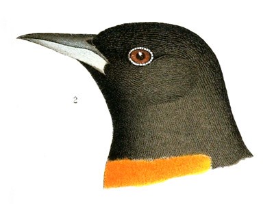 An allied race (I. longirostris) from New Grenada has a longer and more slender bill, and a paler, lemon-yellow color. The I. aurantius of Brazil lacks the long, pointed, distinct feathers of the throat, and is of an intensely rich orange-red color, with much the same pattern as the present bird.