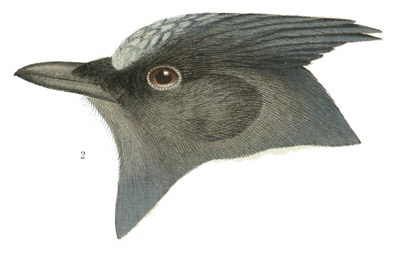 Cyanura stelleri, SwainsonSTELLER’S JAYCorvus stelleri, Gmelin, Syst. Nat. I, 1788, 370.—Lath. Ind. Orn. I, 1790, 158.—Pallas, Zoog. Rosso-As. I, 1811, 393.—Bonap. Zoöl. Jour. III, 1827, 49.—Ib. Suppl. Syn. 1828, 433.—Aud. Orn. Biog. IV, 1838, 453, pl. ccclxii. Garrulus stelleri, Vieillot, Dict. XII, 1817, 481.—Bonap. Am. Orn. II, 1828, 44, pl. xiii.—Nuttall, Man. I, 1832, 229.—Aud. Syn. 1839, 154.—Ib. Birds Am. IV, 1842, 107, pl. ccxxx (not of Swainson, F. Bor.-Am.?). Cyanurus stelleri, Swainson, F. Bor.-Am. II, 1831, 495, App. Pica stelleri, Wagler, Syst. Av. 1827, Pica, No. 10. Cyanocorax stelleri, Bon. List, 1838. Finsch, Abh. Nat. III, 1872, 40 (Alaska). Cyanocitta stelleri, Cab. Mus. Hein. 1851, 221. Newberry, P. R. R. Rep. VI, IV, 1857, 85. Cyanogarrulus stelleri, Bonap. Conspectus, 1850, 377. Steller’s Crow, Pennant, Arctic Zoöl. II, Sp. 139. Lath. Syn. I, 387. Cyanura s. Baird, Birds N. Am. 1858, 581 (in part). Lord, Pr. R. A. Inst. IV, 122 (British Columbia; nest).—Dall & Bannister, Trans. Chicago Acad. I, 1869, 486 (Alaska).—Cooper, Orn. Cal. 1, 1870, 298 (in part).