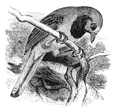 The Canada Jay has a near ally in a species of northern Europe and Siberia,—the Siberian Jay (P. infaustus). In size and proportions the two are quite identical, there being about the same proportionate length of wing and tail, and a general correspondence in the minutiæ of external anatomy. In colors, however, they differ entirely; the P. infaustus having the head darker than the body, and uniform (instead of the contrary), and in having the lower primary and lower feathers of the greater coverts, as well as the greater part of the tail, bright rufous.