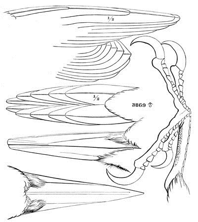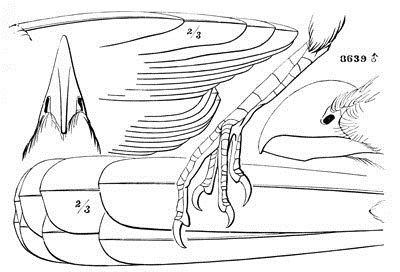 4. Sphyropicus. Nostrils considerably overhung by the lateral ridge, very small, linear. Gonys as long as the culmen, from the nostrils. Tips of tail-feathers elongated and linear, not cuneate. Wings very long; exposed portion of spurious primary about one fourth that of second quill.
