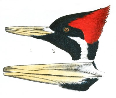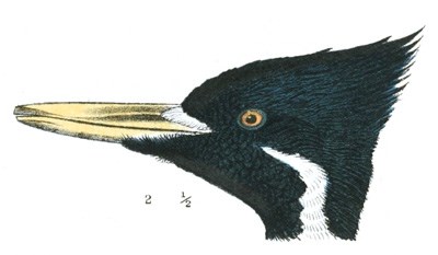 Campephilus principalis, GrayIVORY-BILLED WOODPECKERPicus principalis, Linn. Syst. Nat. I, 1766, 173.—Wilson, Am. Orn. IV, 1811, 20, pl. xxxix, f. 6.—Wagler, Syst. Avium, 1827, No. 1.—Aud. Orn. Biog. I, 1832, 341; V, 525, pl. lxvi.—Ib. Birds America, IV, 1842, 214, pl. cclvi.—Sundevall, Consp. Pic. 4. Dendrocopus principalis, Bon. List, 1838. Campephilus principalis, Gray, List Genera, 1840.—Baird, Birds N. Am. 83.—Cab. & Hein. Mus. Hein. IV, II, 100.—Dresser, Ibis, 1865, 468 (breeds in Brazos and Trinity, Texas).—Gray, Cat. 53.—Allen, Birds E. Florida, 301. Dryotomus (Megapicus) principalis, Bon. Con. Zyg. Aten. Ital. 1854, 7. Dryocopus principalis, Bon. Consp. 1850, 132. White-billed Woodpecker, Catesby, Car. I, 16.—Pennant, Latham.