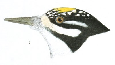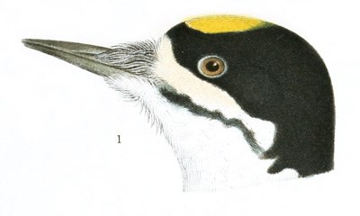 Picoides arcticus, GrayTHE BLACK-BACKED THREE-TOED WOODPECKERPicus (Apternus) arcticus, Sw. F. Bor. Am. II, 1831, 313. Apternus arcticus, Bp. List, 1838.—Ib. Consp. 1850, 139.—Newberry, Zoöl. Cal. and Oreg. Route, 91, Rep. P. R. R. Surv. VI, 1857. Picus arcticus, Aud. Syn. 1839, 182.—Ib. Birds Amer. VI, 1842, 266, pl. cclxviii.—Nuttall, Man. I, (2d ed.,) 1840, 691.—Sundevall, Consp. I, 1866, 15. Picus tridactylus, Bon. Am. Orn. II, 1828, 14, pl. xiv, f. 2.—Aud. Orn. Biog. II, 1834, 198, pl. cxxxii. Tridactylia arctica, Cab. & Hein. Picoides arcticus, Gray, Gen.—Baird, Birds N. Am. 1858, 98.—Lord, Pr. R. Art. Inst. Woolwich, IV, 1864, 112 (Cascade Mountains).—Cooper, Pr. Cal. Ac. Sc. 1868 (Lake Tahoe and Sierra Nevada).—Samuels, 94.—Cooper, Orn. Cal. 1, 1870, 384.