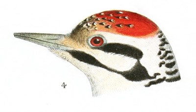 Habits. This species has a well-defined and extended distribution, from the Pacific to the Atlantic, and from the northern portions of the United States to the extreme Arctic regions. In the United States it has been found as far south as Massachusetts, New York, and Ohio, but rarely; and, so far as I am aware, it is a winter visitant only to any but the extreme northern portions of the Union, except along the line of the Rocky Mountains and the Sierra Nevada. Audubon says it occurs in Northern Massachusetts, and in all portions of Maine that are covered by forests of tall trees, where it constantly resides. He saw a few in the Great Pine Forest of Pennsylvania, and Dr. Bachman noticed several in the neighborhood of Niagara Falls, and was of the opinion that it breeds in the northern part of New York. The same writer describes the nesting-place of the Arctic Woodpecker as generally bored in the body of a sound tree, near its first large branches. He observed no particular choice as to the timber, having seen it in oaks, pines, etc. The nest, like that of most of this family, is worked out by both sexes, and requires fully a week for its completion. Its usual depth is from twenty to twenty-four inches. It is smooth and broad at the bottom, although so narrow at its entrance as to appear scarcely sufficient to enable one of the birds to enter it. The eggs are from four to six, rather rounded and pure white. Only one brood is raised in the season. The young follow their parents until the autumn. In the southern districts where these Woodpeckers are found, their numbers are greatly increased in the winter by accessions from the North.