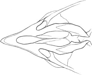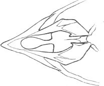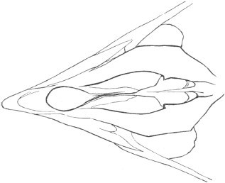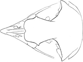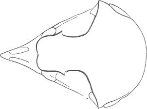 A. Scapular process of the coracoid produced forward so as to meet the clavicle42 (Huxley). Nasal bones almost completely ossified, the nostril being a small, usually circular opening, with a raised or “rimmed” margin, and conspicuous, usually central, bony tubercle. Inferior surface of the supermaxillary bone with a prominent median angular ridge. Superciliary process of the lachrymal consisting of a single piece. (Falconinæ.43)