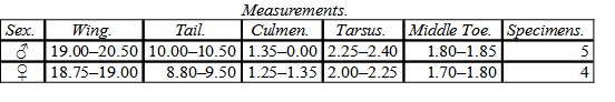 The American bird, as indicated by the series before us, would seem to be rather the larger; for the European specimens measure uniformly about an inch less than the American in length of the wing.
