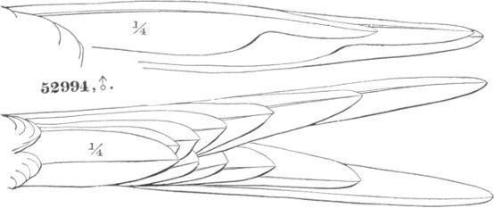 In all the American specimens, of both sexes, the shafts of the tail-feathers are continuously white, while in the European they are clear white only at the roots or for the basal half.