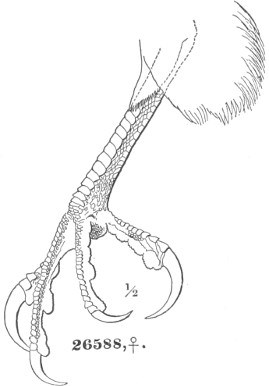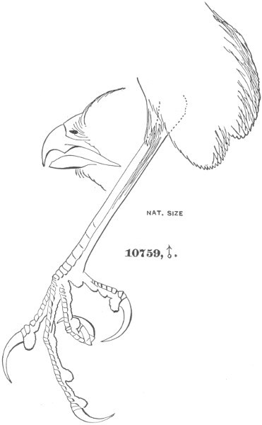 The species of this genus are exceedingly numerous, about fifty-seven being the number of nominal “species” recognized at the present date. Among so many species, there is, of course, a great range of variation in the details of form, so that many generic and subgeneric names have been proposed and adopted to cover the several groups of species which agree in certain peculiarities of external structure. That too many genera and subgenera have been recognized is my final conclusion, after critically examining and comparing forty of the fifty-seven species of Gray’s catalogue (Hand List of Birds, I, 1869, pp. 29–35). The variation of almost every character ranges between great extremes; but when all the species are compared, it is found that, taking each character separately, they do not all correspond, and cross and re-cross each other in the series in such a manner that it is almost impossible to arrange the species into well-defined groups. From this genus I exclude Lophospiza, Kaup (type, L. trivirgatus); Asturina, Vieill. (type, A. nitida); Rupornis, Kaup (type, R. magnirostris); Buteola, Dubus (= Buteo, type, B. brachyura, Vieill.); included by Gray under Astur, as subgenera, and Tachyspiza, Kaup (type, T. soloensis); and Scelospiza, Kaup (type, S. francesii); which are given by Gray as subgenera of Micronisus, Gray (type, Accipiter gabar), the species of the typical subgenus of which, as arranged in Gray’s Hand List, I refer to Nisus. All these excluded names I consider as representing distinct genera.