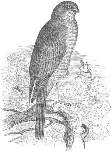Besides the smaller birds, young chickens, and pigeons, this Hawk has been known to occasionally feed on small reptiles and insects, as also upon the smaller quadrupeds.