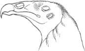 Gen. Char. Size of Rhinogryphus, but more robust, with shorter wings, and very different flight. Wings with the remiges abbreviated, the primaries scarcely reaching to the middle of the tail. Tail even, or faintly emarginated. Head and upper portion of the neck naked, the feathers extending farther up behind than in front; naked skin of the side of the neck transversely corrugated; no bristles before the eye. Nostril narrow, occupying only about the posterior half of the nasal orifice, its anterior end contracted and acute. Cere not contracted anteriorly, but the upper and lower outline parallel; much depressed, or broader than deep. Plumage beginning gradually on the neck with normal, or broad and rounded, feathers. Fourth or fifth quill longest; outer five with inner webs sinuated. Tarsus longer than middle toe.