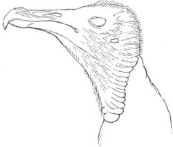 Rhinogryphus aura (Linn.)TURKEY-BUZZARD; RED-HEADED VULTUREVultur aura, Linn. Syst. Nat. 122, 1766.—Gmel. Syst. Nat. 246, 1789.—Lath. Syn. I, 9; Syn. Supp. I, 2; Ind. Orn. 4.—Gen. Hist. I, 12, pl. iii.—Penn. Arct. Zoöl. I, 221.—Bart. Trav. Carol. p. 285.—Vieill. Ois. Am. Sept. pl. ii.—Ord (Wils.) Am. Orn. pl. lxxv, f. 1.—Aud. Edin. New. Phil. Journ. II, 172.—Darw. Journ. Res. p. 68.—Wagl. Isis, 1831, 517.—Shaw, Zoöl. VII, 36.—Sells, Proc. Zoöl. Soc. pt. v, p. 33; Mag. Nat. Ser. 2, I, 638.—Ledru, Voy. Ténérif. Trinit. etc. II, 264. Cathartes aura, Illig. Prod. Syst. 236, 1811.—Cuv. Règ. An. (ed. 1), 308; (ed. 2) I, 317.—Spix, Av. Bras. I, 2.—Vig. Zoöl. Journ.—Less. Man. Orn. I, 73; Tr. Orn. p. 28.—Bonap. Ann. Lyc. N. Y. II, 23; Isis, 1832, p. 1135; List Eur. & N. Am. B. p. 1.—Rich. & Swains. F. B. A. II, 4.—Jard. (Wils.) Am. Orn. I, 3; IV, 245.—Brewer (Wils.) Synop. p. 682.—Ib. N. A. Oölogy.—Aud. Birds Am. pl. cli; Orn. Biog. II, 339; Synop. Birds Am. p. 2.—Nutt. Man. I, 43.—Swains. Classif. B. II, 205.—Darw. Zool. Beag. pt. iii, p. 8.—Gray, Gen. B. fol. sp. 2; List B. Brit. Mus. p. 3; List Gen. & Subgen. Brit. Mus. p. 2.—De Kay, Zoöl. N. Y. II, 2, pl. v, f. 12.—Gosse, Birds Jam. 1.—Peale, U. S. Expl. Exp. VIII, 58.—Reichenb. Prakt. Nat. Vög. p. 26.—Kerr, Transl. Gmel. II, 472.—Max. Beit. III, 64.—Rich. (Schomb.) Faun. Brit. Guiana, p. 742.—Cab. (Tschudi) Av. Consp. Wieg. Archiv, 1844, 262; Faun. Per. Orn. p. 71.—D’Orb. Synop. Av. Mag. Zoöl. p. 2; Voy. Am. Merid. Ois. p. 38 (R. Sagra); Hist. Nat. Cuba Ois. p. 4.—Licht. Verz. Doubl. p. 63.—Hartl. Syst. Ind. Azar. Pax. p. 1.—Max. Cab. Journ. VI, 1858, 2.—Gurney, Cat. Rapt. B. 1864, 42.—Dresser, Ibis, 1865, 322 (Texas).—Coues, Key, 1872, 222. Percnopterus aura, Steph. Zoöl. XIII, pt. ii, p. 7, 1826. Vultur iota, Molin. St. Chil. p. 265, 1782.—Gmel. Syst. Nat. p. 247.—Daud. Tr. Orn. II, 20.—Lath. Gen. Hist. I, 15. Cathartes iota, Bridg. Proc. Zoöl. Soc. pl. ii, p. 108; Ann. Nat. Hist. XIII, 498. Cathartes ruficollis, Spix, Av. Bras. I, 2, 1824 (quote Catesby, pl. vi). Cathartes falklandicus, Sharpe, Ann. & Mag. N. H.