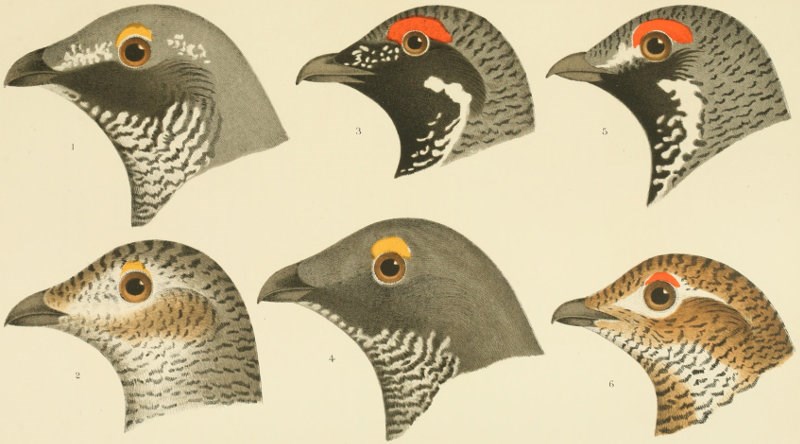 Dr. Suckley, in a series of papers on the Grouse of the United States which were read before the New York Lyceum in 1860, states that this species probably extend their range to quite a distance south of latitude 40° along the line of the Rocky Mountains, in New Mexico. This writer claimed to have met with them near Pike’s Peak, in the Cheyenne Pass, and in 1853 he found them in great numbers in Lewis and Clarke’s Pass, west of Fort Benton. He also found them abundantly in Oregon and on the slopes of the Cascade and Coast Ranges, extending wherever pine or fir timber occurs, to the very borders of the ocean. The Black Hills, in Nebraska, he gives as their most eastern limit.