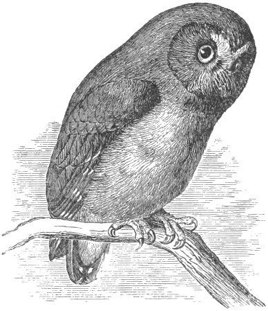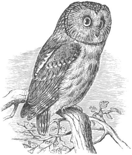 Nyctale acadica, BonapSAW-WHET OWL; WHITE-FRONTED OWL; KIRTLAND’S OWLStrix acadica, Gmel. Syst. Nat. p. 296, 1789.—Daud. Tr. Orn. II, 206, 1800.—Vieill. Ois. Am. Sept. I, 49, 1807.—Aud. Birds Am. pl. cxcix, 1831; Orn. Biog. V, 397.—Rich. & Swains. F. B. A. II, 97, 1831.—Bonap. Ann. Lyc. N. Y. II, pp. 38, 436; Isis, 1832, p. 1140.—Jard. (Wils.) Am. Orn. II, 66.—Naum. Nat. Vög. Deutschl. (ed. Nov.) I, 434, pl. xliii, figs. 1 & 2.—Peab. Birds Mass. p. 90.—Nutt. Man. p. 137, 1833. Nyctale acadica, Bonap. List, p. 7, 1838; Consp. Av. p. 44.—Gray, Gen. B. fol. App. p. 3, 1844.—Kaup, Monog. Strig. Cont. Orn. 1852, p. 104.—Ib. Tr. Zoöl. Soc. IV, 1859, 206.—Strickl. Orn. Syn. I, 176, 1855.—Newb. P. R. R. Rept. VI, 77, 1857.—Cass. Birds N. Am. 1858, 58.—Coop. & Suck. P. R. R. Rept. XII, ii, 156, 1860.—Coues, Prod. B. Ariz. 14, 1866.—Gray, Hand List, I, 1869, 51.—Lord, Pr. R. A. I. IV, iii (Brit. Columb.).—Ridgway, Am. Nat. VI, May, 1872, 285.—Coues, Key, 1872, 206.—Gray, Hand List, I, 51, 1869. Scotophilus acadicus, Swains. Classif. Birds II, 217, 1837. Strix passerina, Penn. Arct. Zoöl. p. 236, sp. 126, 1785.—Forst. Phil. Transl. LXII, 385.—Wils. Am. Orn. pl. xxxiv, f. 1, 1808. Ulula passerina, James. (Wils.), Am. Orn. I, 159, 1831. Strix acadiensis, Lath. Ind. Orn. p. 65, 1790. S. albifrons, Shaw, Nat. Misc. V, pl. clxxi, 1794; Zoöl. VII, 238, 1809.—Lath. Orn. Supp. p. 14. Bubo albifrons, Vieill. Ois. Am. Sept. I, 54, 1807. Scops albifrons, Steph. Zoöl. XIII, ii, 51. Nyctale albifrons, Cass. Birds Cal. & Tex. 187, 1854.—Bonap. Consp. Av. p. 54.—Cass. Birds N. Am. 1858, 57.—Gray, Hand List, I, 52, 1869. Strix frontalis, Licht. Abh. Ak. Berl. 1838, 430. Nyctale kirtlandi, Hoy, Proc. Ac. Nat. Sc. Phil. VI, 210, 1852. S. phalænoides, Daud. Tr. Orn. II, 206, 1800.—Lath. Ind. Orn. Supp. p. 16, 1802; Syn. Supp. II, 66; Gen. Hist. I, 372, 1828. Athene phalænoides, Gray, Gen. B. fol. sp. 43, 1844. Athene wilsoni, Boie, Isis, 1828, 315.