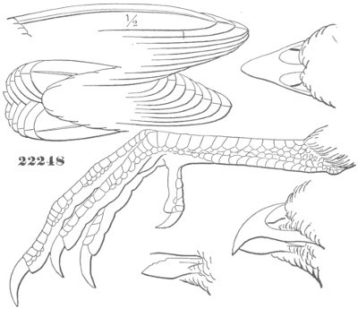 Gen. Char. Bill stout. Head entirely without any crest. Tail short, scarcely more than half the wing, composed of moderately soft feathers. Wings normal. Legs developed, the toes reaching considerably beyond the tip of the tail; the lateral toes short, equal, their claws falling decidedly short of the base of the middle claw.
