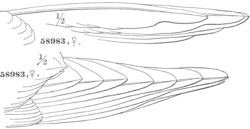 Note.—Tegmina (73½) are coverts in general, whether of wing or tail. Calypteria are tail coverts. Tectrices (83), wing coverts.