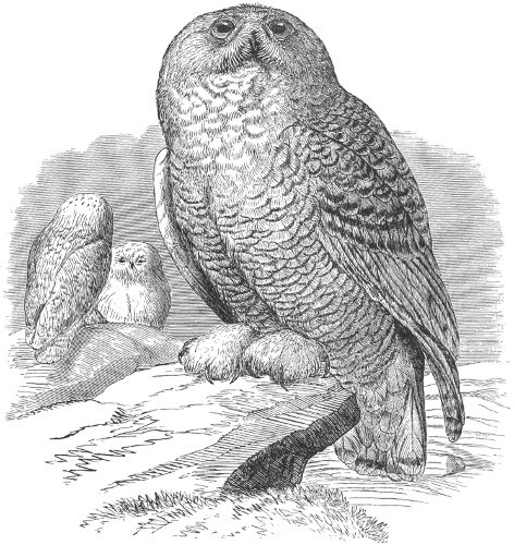 In the Arctic regions of North America and in Greenland it is quite abundant, and has been observed as far to the north as Arctic voyagers have yet reached. Professor Reinhardt states that it is much more numerous in the northern than in the southern part of Greenland. Sir John Richardson, who, during seven years’ residence in the Arctic regions, enjoyed unusual opportunities for studying the habits of this Owl, says that it hunts its prey in the daytime. It is generally found on the Barren Grounds, but is always so wary as to be approached with difficulty. In the wooded districts it is less cautious.