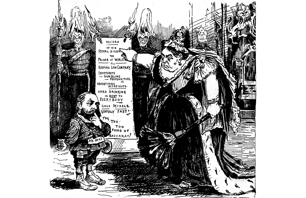 However, at all costs, the absurdity of reverence for this twerp had to be maintained. A sudden coronary for his father, Fat Ed, was very much on the cards. Gluttony was his pleasure, and his pleasure was out of control. When he sat down to eat it was a virtual suicide attempt. ‘He is a very dangerous guest,’ complained a Permanent Secretary. ‘He once got into Lord Cairns’ dining-room, and ate up the Judge’s luncheon.’63 Trained handlers in Marienbad and Baden Baden had failed to solve his gut. Plus, there was the fornicatory urge in the groin whose onslaught he could not negotiate – men got swindled of their wives in the bedrooms of their own country houses. But it was in Paris that Edward got into full adulterous stride. Fluent in several languages, he spoke German better than English (he had a thick German accent64), adored all things Parisian, and had a keen interest in French furniture.
