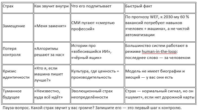 Пауза-вопрос. Какой страх звучит у вас громче? Запишите его – это первый шаг к контролю.