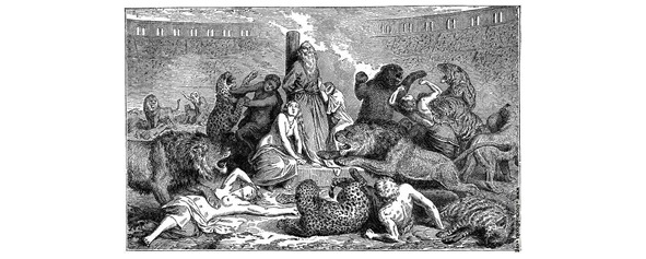 …Их умерщвление сопровождалось издевательствами, ибо их облачали в шкуры диких зверей, дабы они были растерзаны насмерть собаками, распинали на крестах, или обреченных на смерть в огне поджигали с наступлением темноты ради ночного освещения. Для этого зрелища Нерон предоставил свои сады».