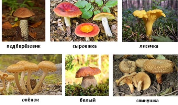 На земле растут – подберёзовик, сыроежка, лисичка, опёнок, белый, свинушка… что их всех объединяет? Каким одним словом ты бы назвал их всех? Что это?…