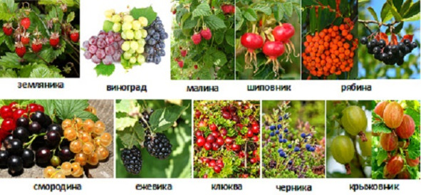 В лесу или в саду растут – земляника, черника, малина, шиповник, смородина, ежевика, клюква, виноград, рябина, крыжовник… что их всех объединяет? Каким одним словом ты бы назвал их всех? Что это?…