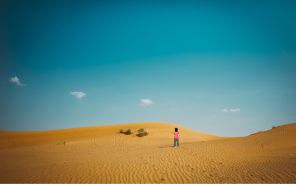 Вова шлёпнулся на землю и начал осматриваться, где он. Вокруг него была безжизненная пустыня, кругом был один жёлтый песок, с неба палило и жгло яркое солнце, от которого некуда было спрятаться. Никакого магазина, у которого он поджидал маму, не было… И мамы не было. Вообще никого и ничего, кроме песка не было… ни кошек, ни людей, ни деревьев и домов, ни автомобилей на дорогах… Вова испугался и заплакал… Но, Вова плакал и капризничал только, когда рядом была мама, или бабушка, чтобы выпросить у них что-то… Сейчас же никого рядом не было, и Вова перестал плакать. Он встал на ноги и пошёл, куда глаза глядят.