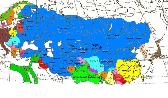 И в начале XIV века владения потомков Чингисхана оставались самой обширной и могущественной державой Евразии. Империя разделилась на четыре больших Улуса: империю Юань в Китае и Монголии, царство Ильханов в Иране и Малой Азии, Джагатайское ханство в Средней Азии и Улус Джучи. Как бы парадоксально это не звучало, на долгие времена в пределах её границ поселилось спокойствие. Стали возможными путешествие и торговля от Чёрного моря до Ханбалыка в Китае. Люди получили одну из основных свобод во все времена – свободу передвижения! Нападение на купеческие караваны каралось смертью, и не было желающих совершить такое преступление. 20