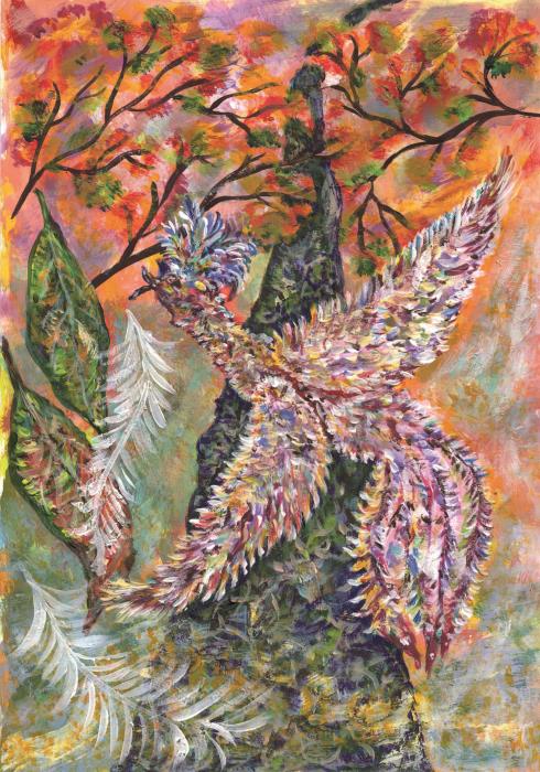 В детстве небо золотое, потому что кроны деревьев, окрашенные осенью, парят где-то там, высоко, почти дотягиваясь до облаков. Когда ветер налетает на них, они вскидывают вверх ветви, чтобы превратиться в Жар-птиц, опахнуть мир волшебными крыльями, заполнить свет и тени невиданным звучанием и перенестись в сказку, оставив ребёнку на память перо, переливающееся нежным шёлком и чудесными словами. Осень приходит год за годом, и вместе с ней воскресают огненные Фениксы – деревья под золотым небом.
