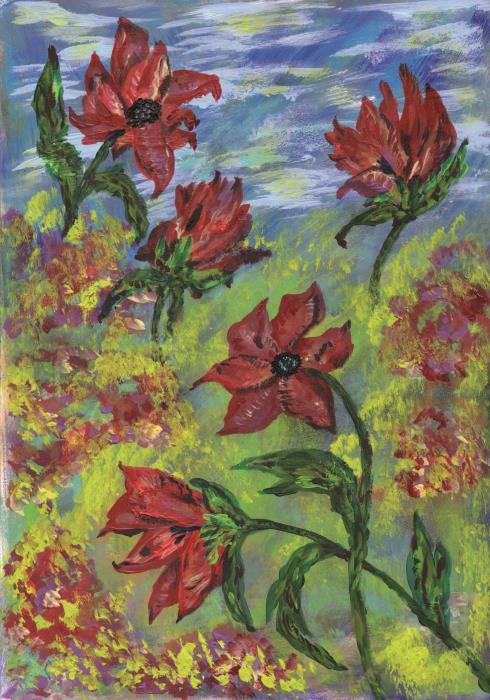 Мальчик вспомнил, как весной бабушка Лена мастерила цветы из красной и розовой бумаги – шершавой, словно её вдоволь помяли в руках или даже пожевали. Бабуля вырезала лепестки и приклеивала их к зелёной материи. Лину по малолетству ножницы не доверили, и он наблюдал, как множится количество поделок.