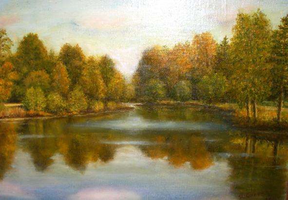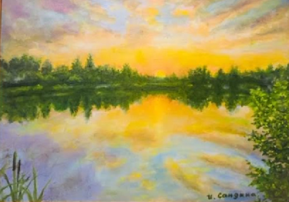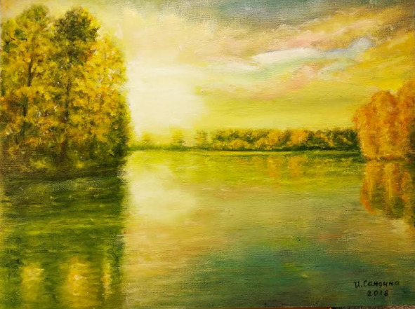 В красках божьего творенья,И леса, и небосвод…И хранят их отраженьяЗеркала притихших вод.