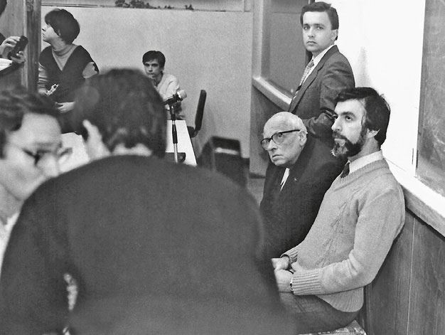 А это мы с Андреем Дмитриевичем Сахаровым на встрече со студентами МГУ