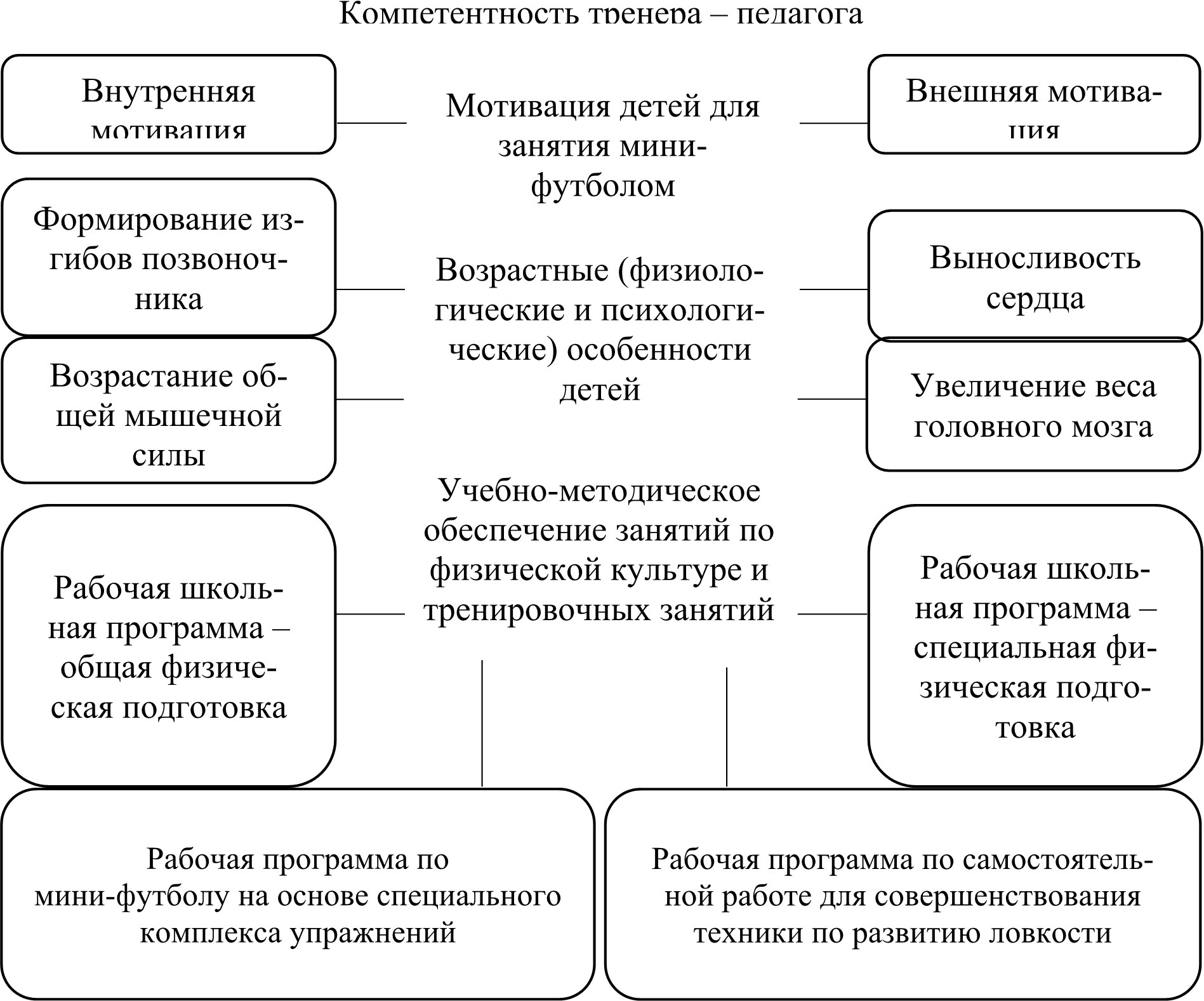 Анализируя современную отечественную и зарубежную литературу и информационную базу данных по проблеме развития координационных способностей у детей младшего школьного возраста в учебно-тренировочном процессе, можно выявить основные факторы, влияющие на эффективность развития ловкости у девочек, занимающихся мини-футболом (рис. 1) [2; 5].